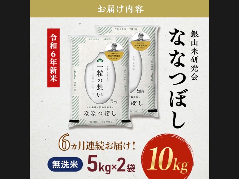6ヵ月 定期便 銀山米研究会の無洗米<ななつぼし>10kg(5kg×2袋) ライス 白米 精米 ブランド米 おにぎ...