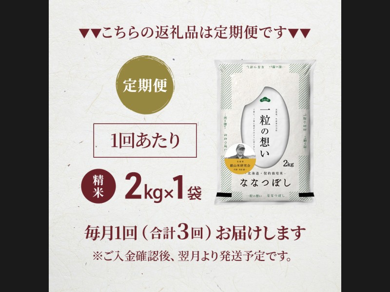 【 2026年産米 新米 予約 】3ヵ月連続お届け 銀山米研究会のお米<ななつぼし>2kg(2kg×1袋) ご飯 ラ...