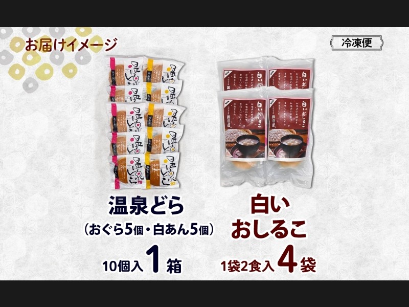 ※賞味期限「おしるこ:製造より冷凍6ヵ月 温泉どら:解凍後冷蔵5日以内」