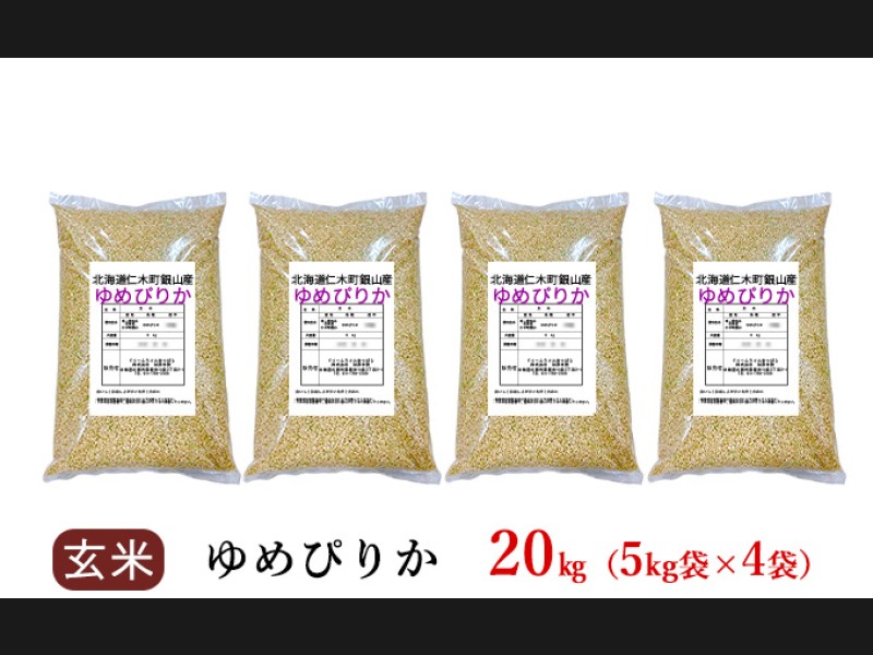 銀山米研究会の玄米<ゆめぴりか>20kg(5kg×4袋)【機内食に採用】 ライス ブランド米 おにぎり お弁当...