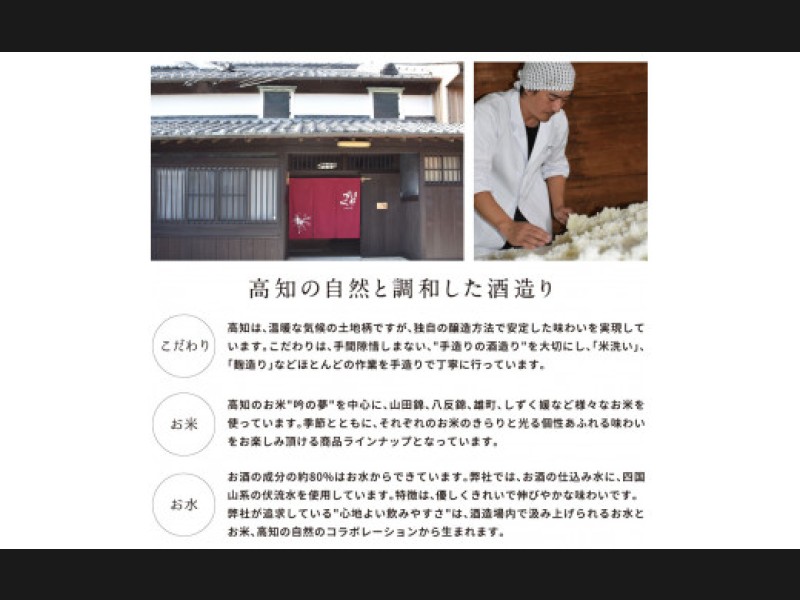 地元高知で創業当時から親しまれている辛口の晩酌酒です。飲み飽きしないすっきりとした味わいで様々な温度帯でお楽しみ頂けます。