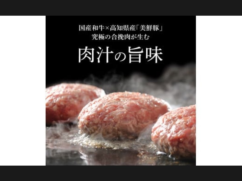 国産牛と高知県ブランド豚の美鮮豚を使用したハンバーグを作りました。