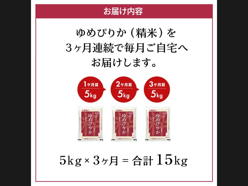 3ヵ月 定期便 ホクレンゆめぴりか(精米5kg)精米 ANA機内食採用 お米 白米 国産 北海道 こめ コメ [JA...