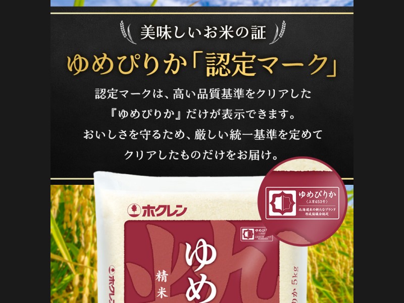 ゆめぴりか認定マーク付きです。認定マークは、高い品質基準をクリアした『ゆめぴりか』だけが表示できます。おいしさを守るため、厳しい統一基準を定めてクリアしたものだけをお届け。