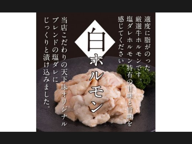 高知の有老舗人気焼肉店”天下味”との共同開発謝礼品。。厳選牛ホルモンを「天下味オリジナルブレンドの本格塩ダレ」に漬け込みました。フライパンで焼けば、その香ばしい香りにお酒、ごはんがすすみます!お酒のお元に、あつあつのごはんの上に載せてお召し上がりください。使いやすい小分けパックであと1品にもお使いいただけます。1965年創業 高知の繁盛焼肉店「天下味」監修