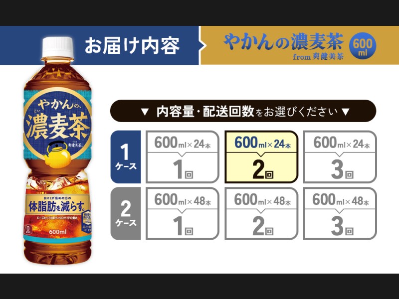 【2回定期便】やかんの濃麦茶 from 爽健美茶 600ml PET×24本(1ケース)合計48本【コカコーラ】 日本茶...