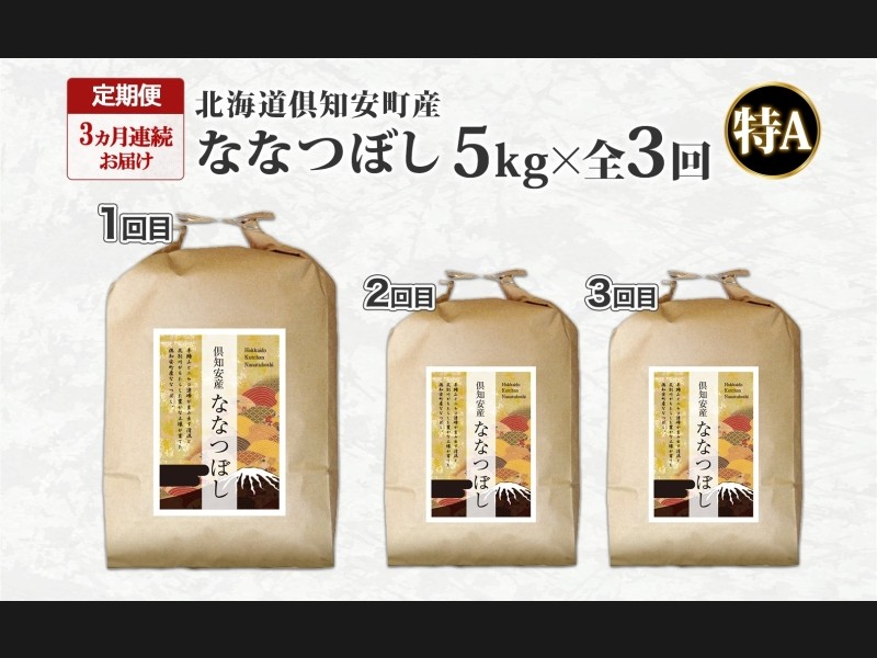 定期便 3ヵ月連続 全3回 北海道 倶知安町産 ななつぼし 精米 5kg 米 特A 白米 お米 道産米 ブランド米 ...