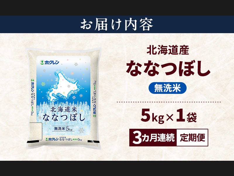 【3ヵ月連続定期便】北海道産 ななつぼし 無洗米 5kg 米 特A 獲得 白米 ごはん 定期便 定期配送 3ヵ月 ...