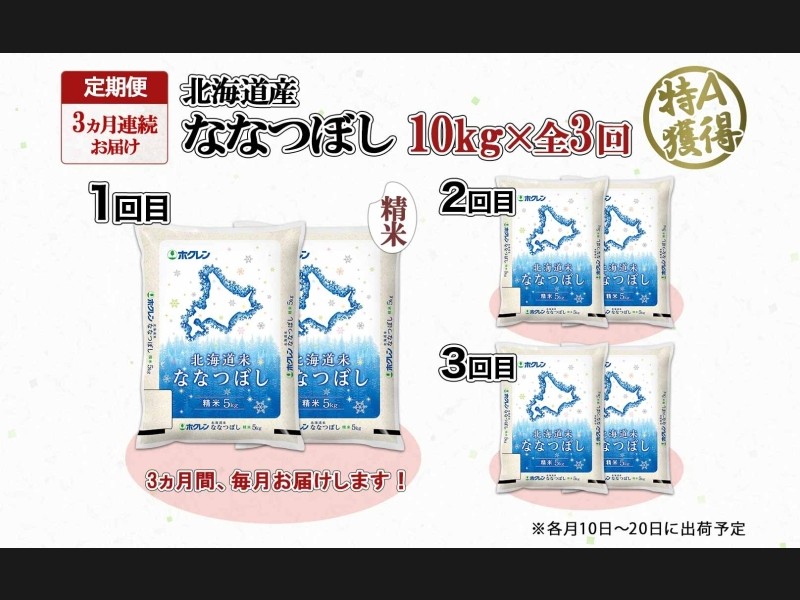 定期便 3ヵ月連続3回 北海道産 ななつぼし 精米 10kg 米 特A 白米 お取り寄せ ごはん 道産米 ブランド米...