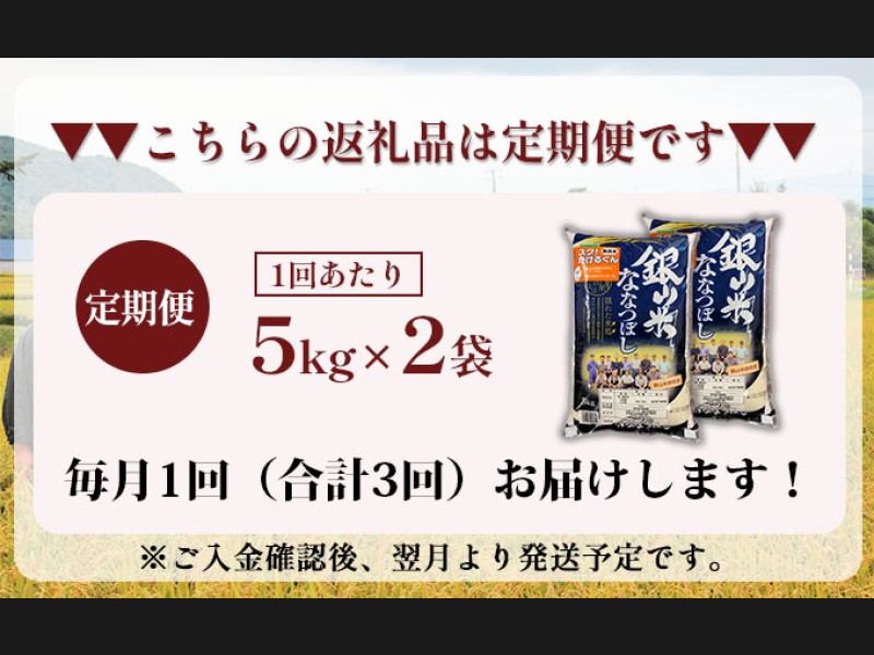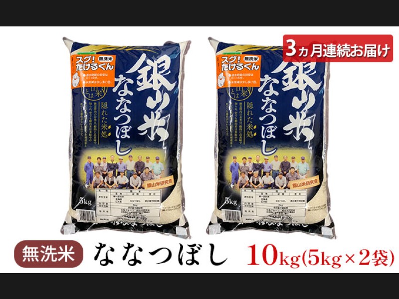3ヵ月 定期便 銀山米研究会の無洗米<ななつぼし>10kg(5kg×2袋) ライス 白米 精米 ブランド米 おにぎ...