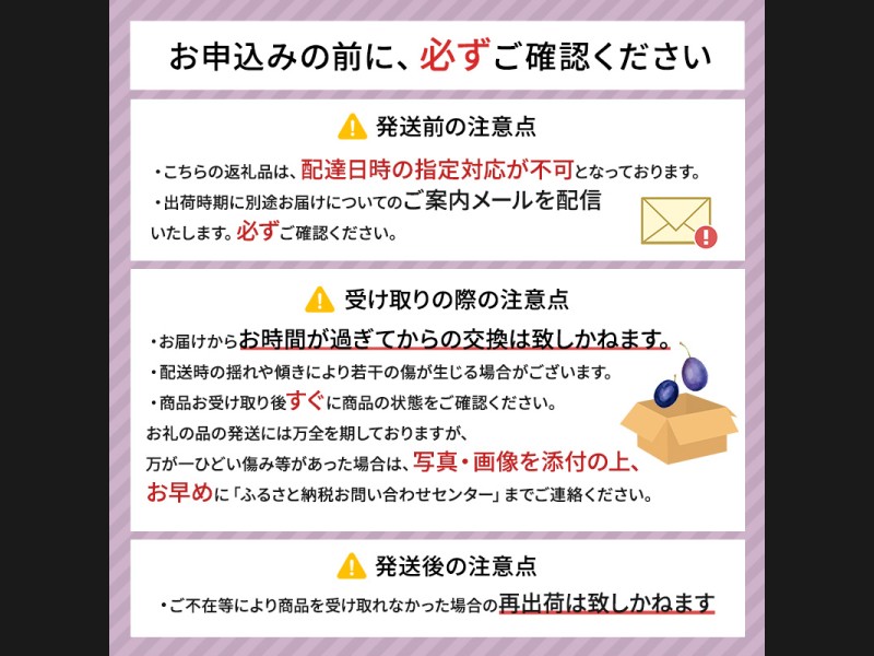 ※災害や天候の影響により収穫量が不足、または、品質を担保できない場合は、事前に連絡させていただきます。