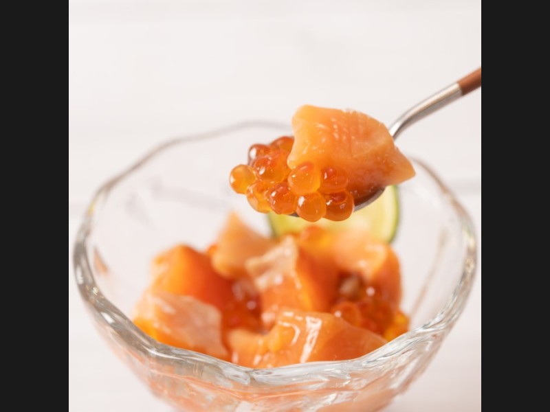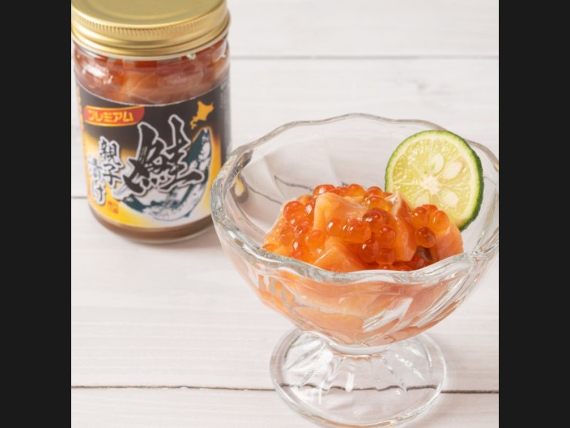 新鮮な鮭を醤油と魚醤を入れた独自タレで味付けし、いくらと和えました。お酒の肴、ご飯に相性抜群です。北海道の海の幸が詰まった生珍味をご賞味ください。