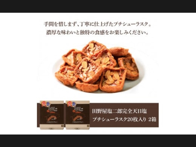 ★田野屋塩二郎完全天日塩★ プチシューラスク 20枚入り×2箱 田野屋塩二郎 天日塩 お菓子 洋菓子 焼き菓子...