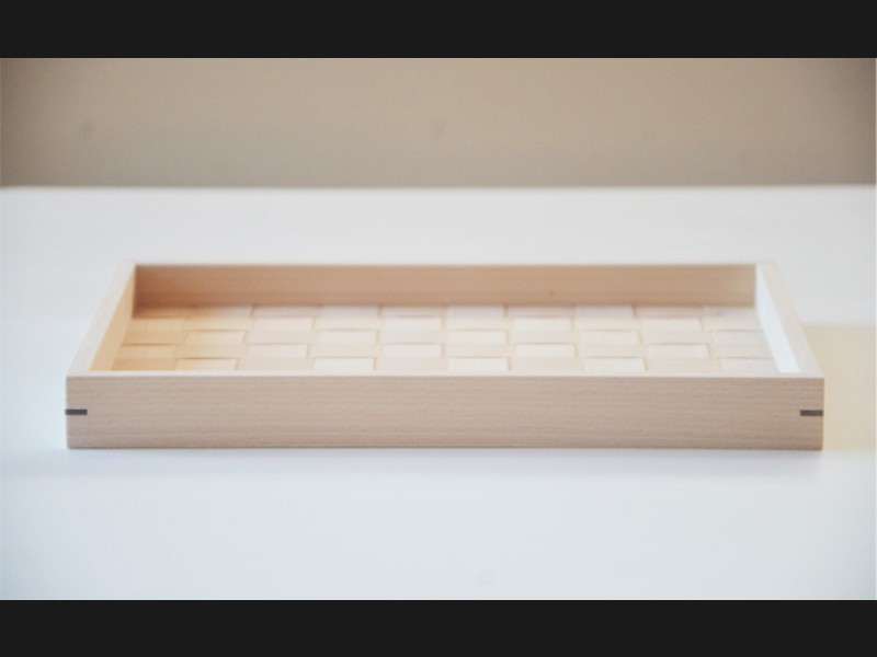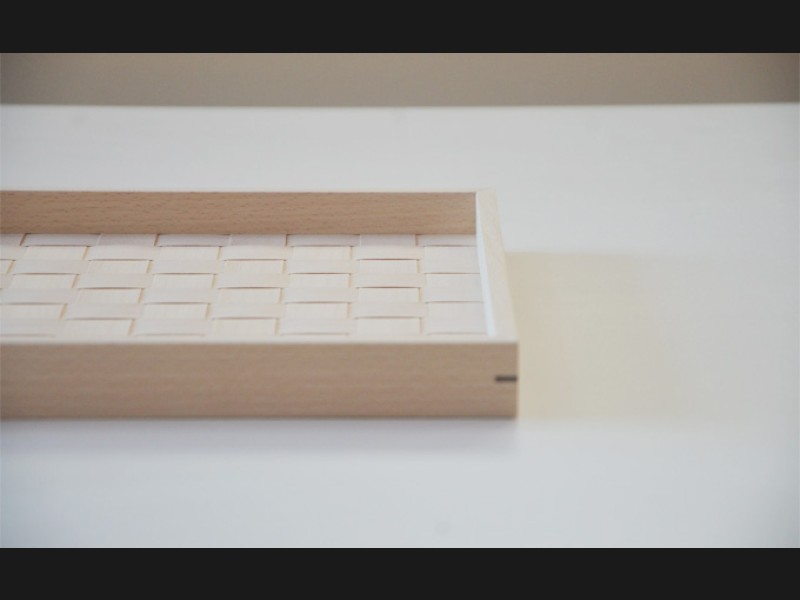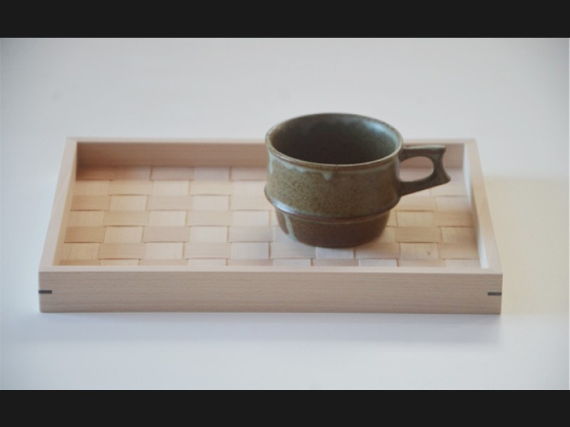 薄く削いだブナ材を1本1本丁寧に編込み、トレイにしました。