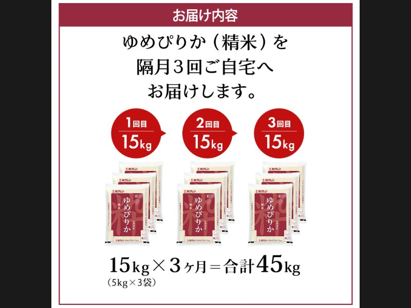 サイズ: ホクレンゆめぴりか精米15kg(5kg×3袋)を隔月3回お届けいたします