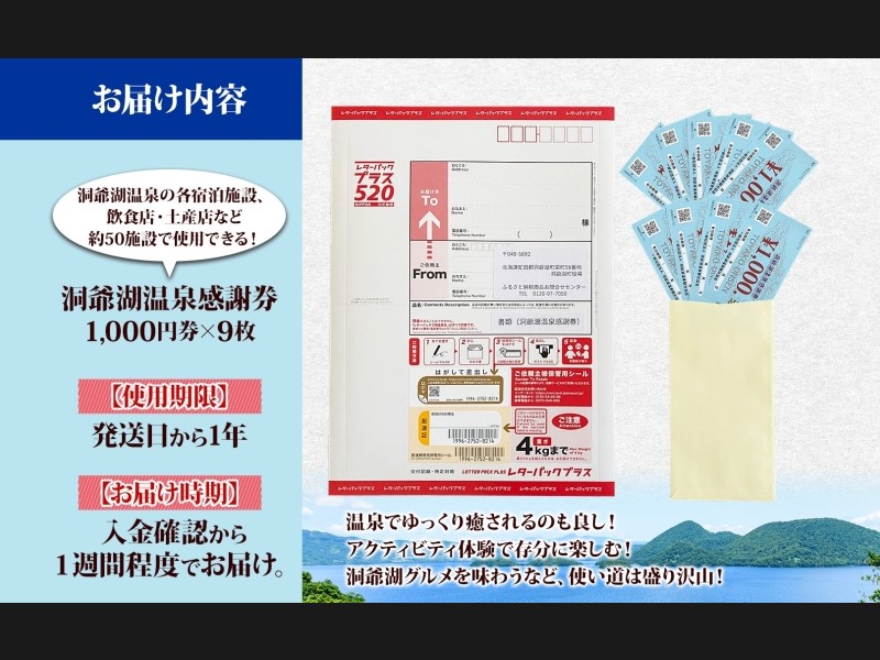 ・洞爺湖温泉感謝券[1,000円券×9枚]