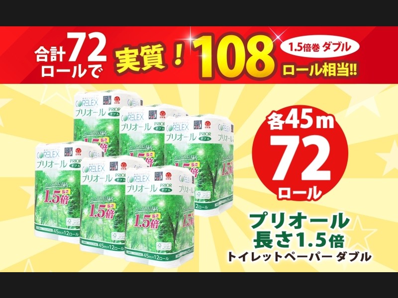 プリオール・ピコ トイレット ペーパー 1.5倍巻き ダブル 45m 12ロール 6パック 日本製 まとめ買い リサ...