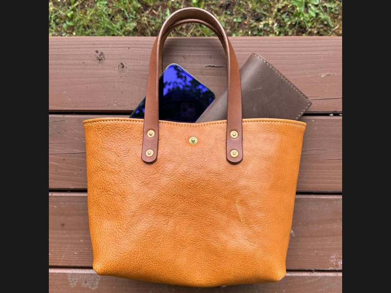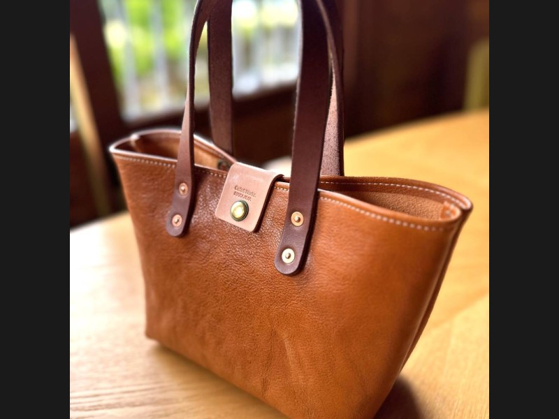 国産牛革のミニトートバッグは軽くて、使うほどに手に馴染み、年月とともに変化する本革ならではの風合いが魅力です。