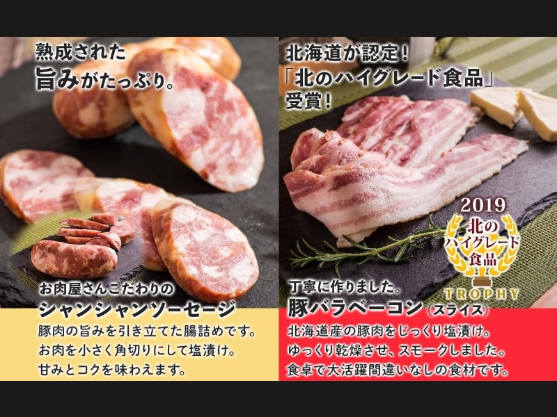区域外の原料を使用して、洞爺湖町内でソーセージ(肉だねを造り、腸詰、加熱)、ベーコン(塩漬け、燻製)、サラミ(肉だねを造り、腸詰、燻製)に加工を行うことにより、一定程度以上の付加価値が生じています。
