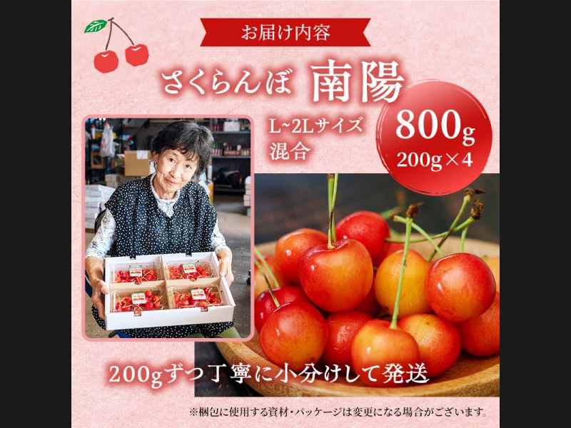 先行受付 さくらんぼ【 南陽 】800g(200g×4)L-LLサイズ混合 サクランボ チェリー フルーツ 果物 果物...