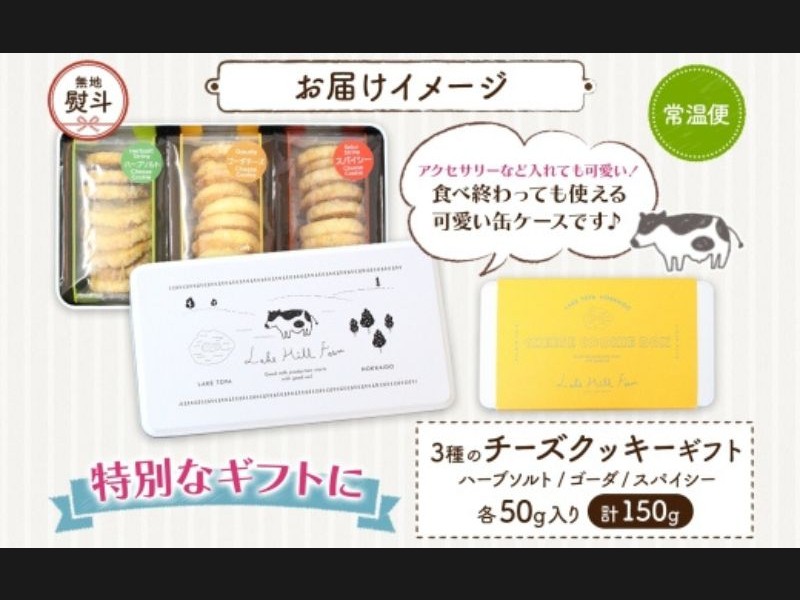 3種類の味を楽しめる「オリジナルチーズクッキーギフト 」お楽しみ下さい。