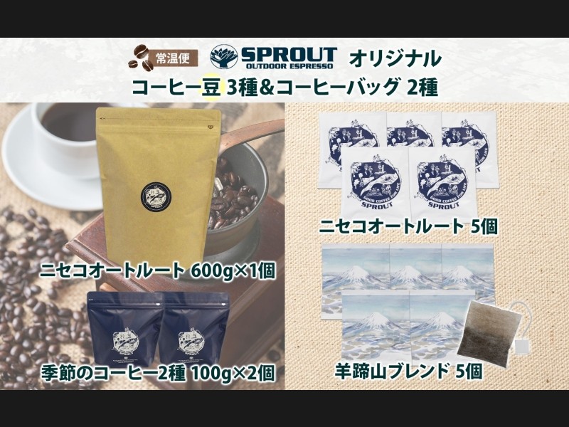 自然の「楽しい」があふれるニセコエリアのおしゃれなロースタリーカフェ「SPROUT」が自家焙煎で作った「コーヒー豆1種&コーヒーバッグ2種」セットです!