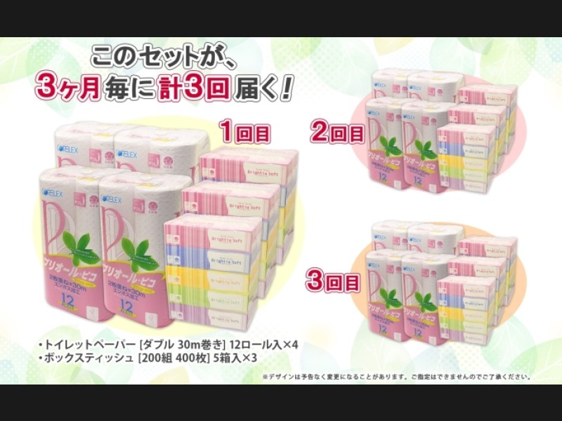 3ヶ月毎3回 定期便 北海道産 トイレットペーパー ダブル 48ロール ティッシュ ペーパー 15箱 セット 定...