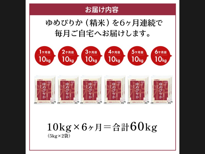 サイズ: ホクレンゆめぴりか精米10kg(5kg×2袋)を6ヵ月間お届けいたします