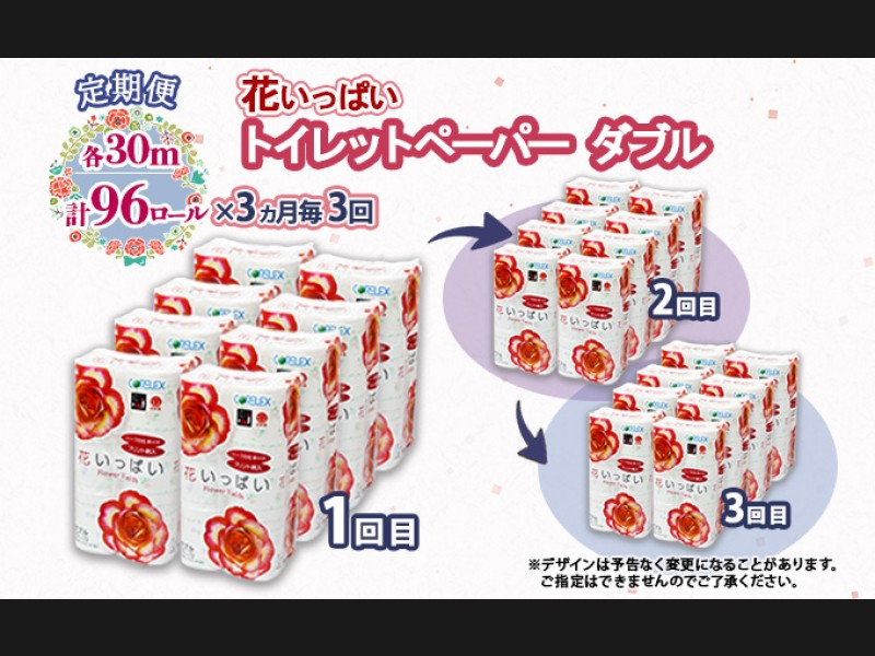 定期便 3ヵ月毎 全3回 花いっぱい トイレットペーパー 30m 96ロール ダブル 全18種 花柄 プリント ハー...