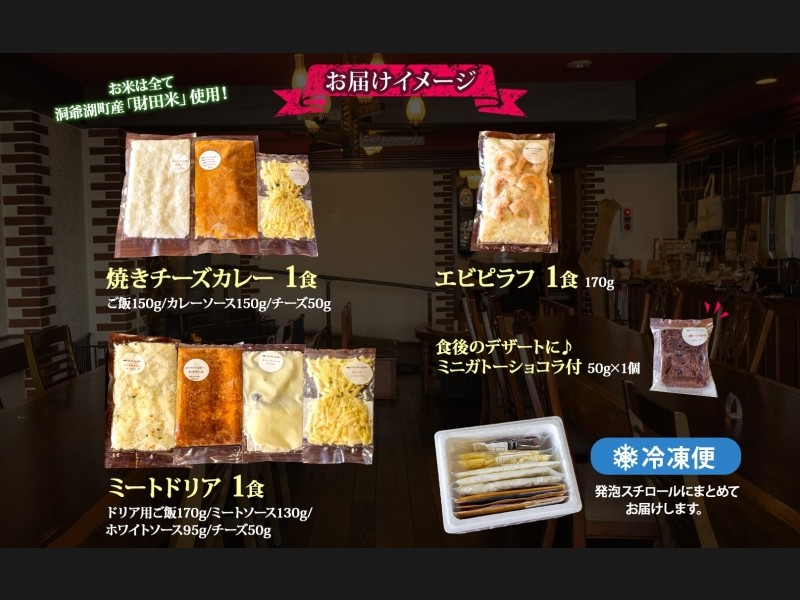 パーラーふくだ特製 焼きチーズカレー ミートドリア エビピラフ ミニガトーショコラ付 北海道 カレー チ...