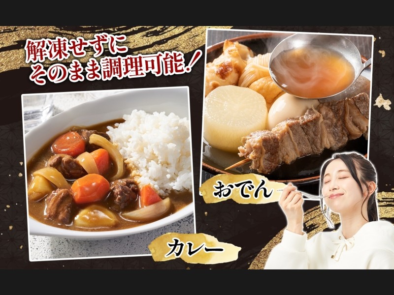 カレーやビーフシチューの具材として使えば手間をかけずに本格的な味わいに。