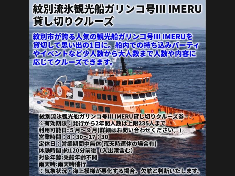 サイズ: ・紋別流氷観光船ガリンコ号3 IMERU貸し切りクルーズ券