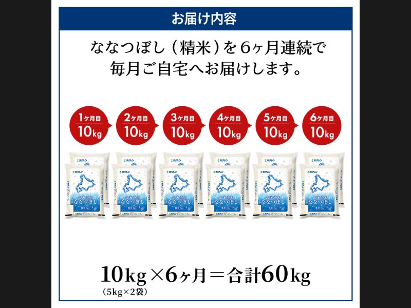 6ヵ月 定期便 (精米10kg)ホクレン北海道ななつぼし(精米5kg×2袋) 北海道米 お米 白米 ごはん ご飯 ライ...