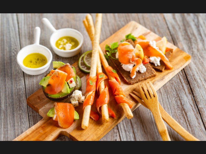 天然物の鮭鱒三種のスモークサーモンの食べくらべセットです。
