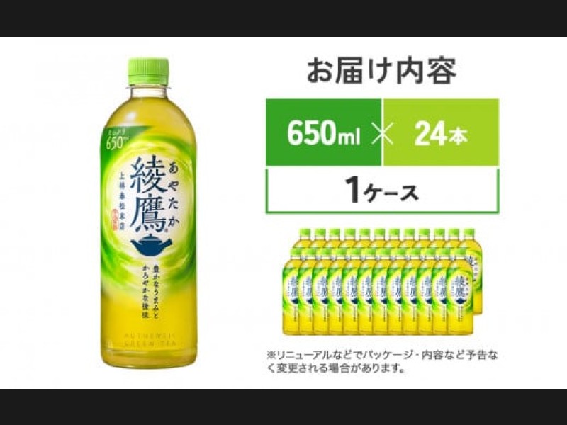 綾鷹 650mlPET×24本 1ケースあやたか ペットボトル お茶 緑茶 コカ・コーラ 送料無料