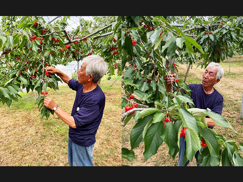 紅秀峰は大粒で果肉がしっかりとした甘みの強い高級品種のさくらんぼです。果樹栽培の技術の高さで評判の北海道仁木町。清らかな風が通り抜ける高台に広がる鶴田農園が今年も限定数量でご用意しました。食べ頃を見極めた丁寧な手摘みの後、経験豊富な選果担当者がひと粒ひと粒選りすぐりして箱詰めして、毎年丁寧にお届けしています。