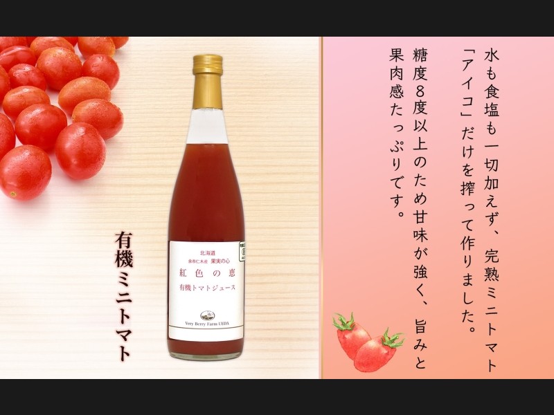サイズ: ・有機ミニトマトジュース「紅色の恵」