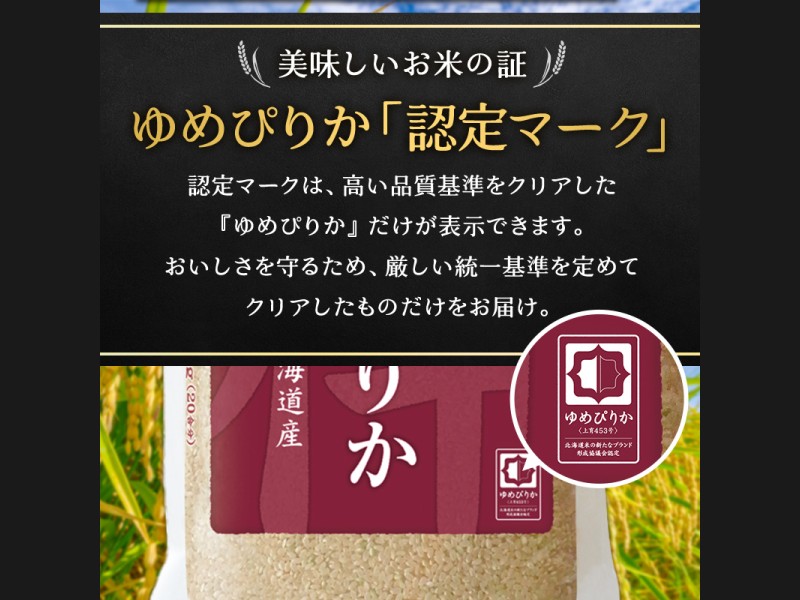 ゆめぴりか認定マーク付きです。認定マークは、高い品質基準をクリアした『ゆめぴりか』だけが表示できます。おいしさを守るため、厳しい統一基準を定めてクリアしたものだけをお届け。