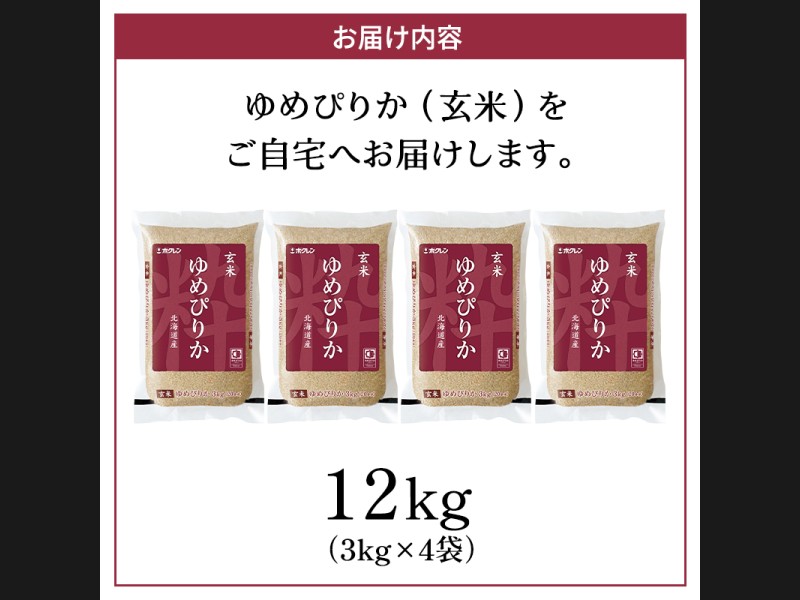 ホクレンゆめぴりか(玄米12kg(3kg×4袋))ANA機内食採用 お米 米 ごはん 玄米 国産 北海道 こめ コメ ...