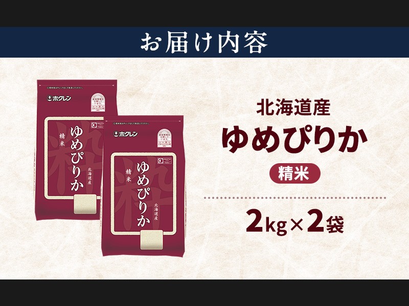 サイズ: ホクレン ゆめぴりか 精米 4kg(2kg×2袋)をお届けします。