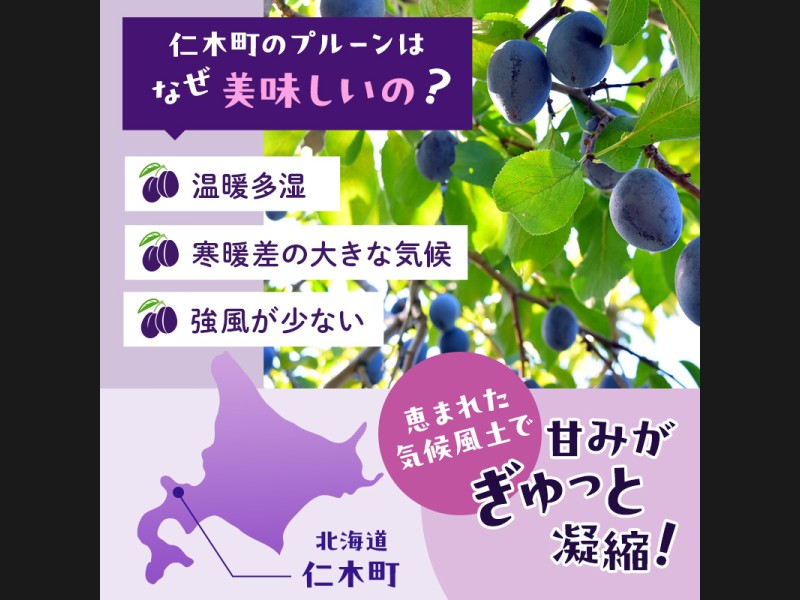 寒暖差の大きな気候から、糖度の高いプルーンが育つ北海道仁木町。