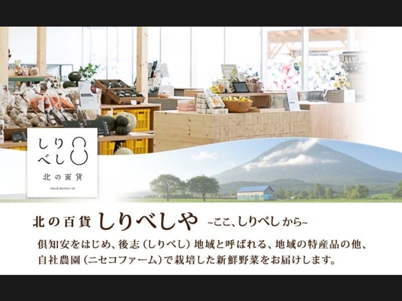 羊蹄山麓の恵みを受けた農作物や、日本海の海産物など、20市町村それぞれの環境や気候を活かした名産品のほか、自社農園(ニセコファーム)で栽培した新鮮野菜を全国の皆さまにお届けしています。