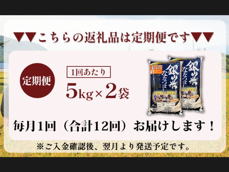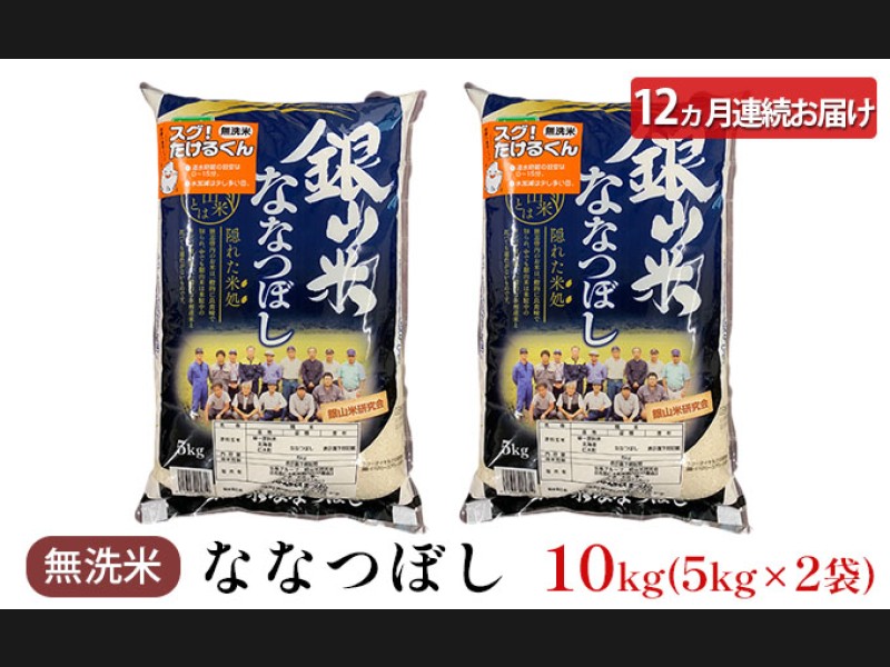 12ヵ月 定期便 銀山米研究会の無洗米<ななつぼし>10kg(5kg×2袋) ライス 白米 精米 ブランド米 おに...