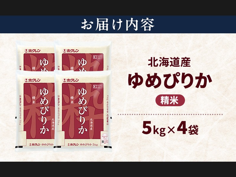 サイズ: ホクレン ゆめぴりか 精米 20kg(5kg×4袋)をお届けします。