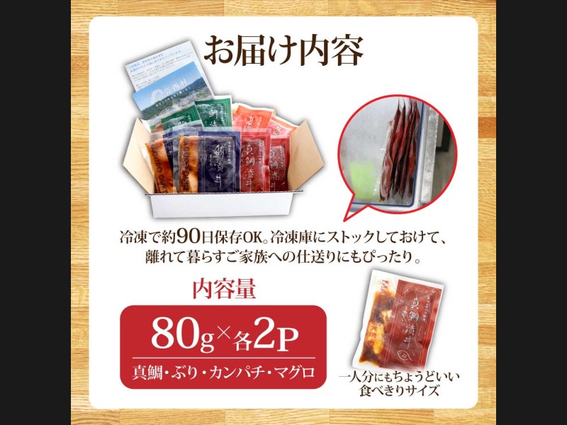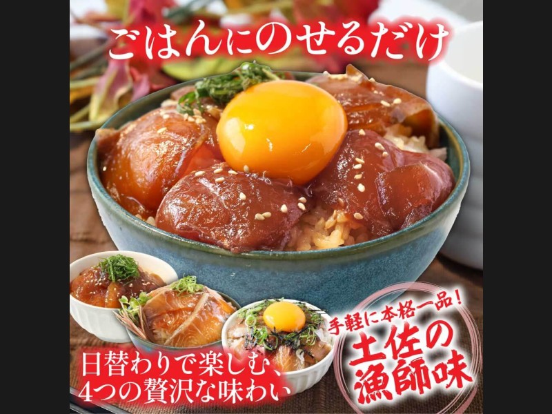 漬け丼シリーズ4種類を各2Pずつお届けするセット!どれも自慢の味なので、ぜひ食べくらべてみてください♪