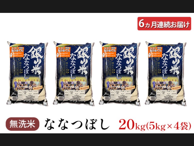 6ヵ月 定期便 銀山米研究会の無洗米<ななつぼし>20kg(5kg×4袋) ライス 白米 精米 ブランド米 おにぎ...