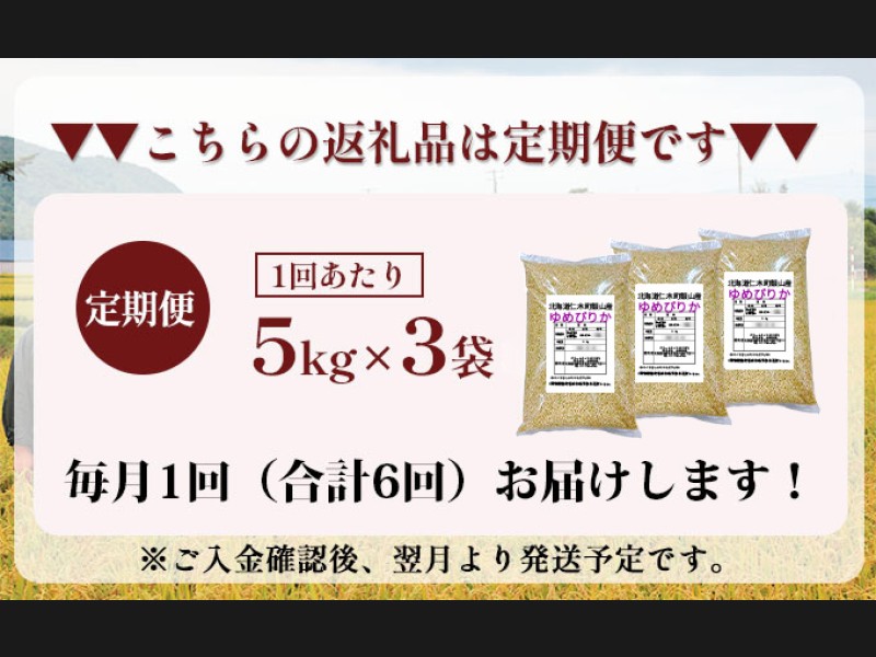 6ヵ月 定期便 銀山米研究会の玄米<ゆめぴりか>15kg(5kg×3袋)【機内食に採用】 ライス ブランド米 お...