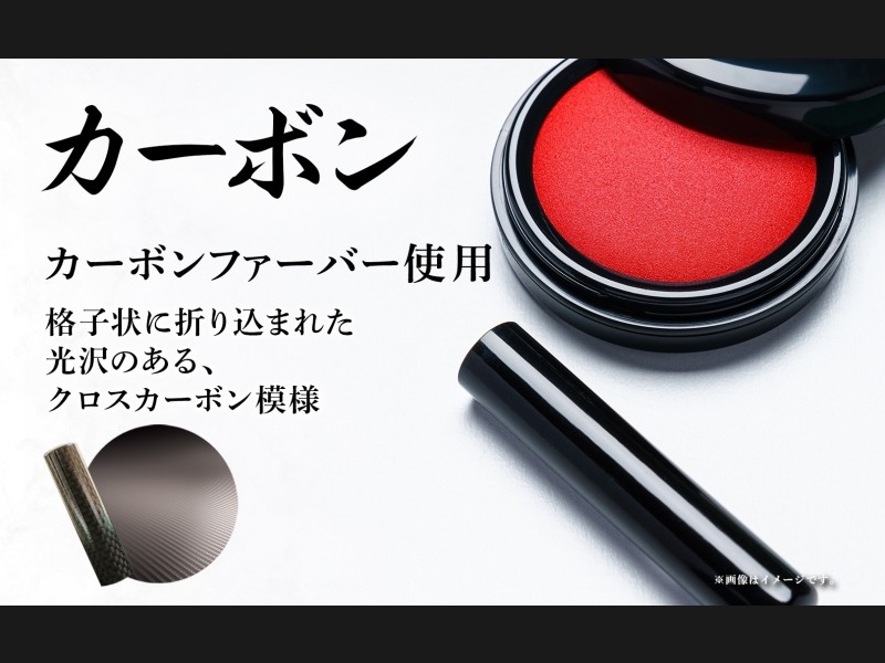 ケースにもカーボンを使用し、印鑑と同デザインで統一。