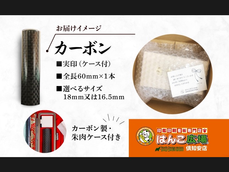 北海道 カーボン 印鑑 実印 60mm×1本 ケース付 選べる 書体 18mm 16.5mm カーボン製 はんこ ハンコ ケー...