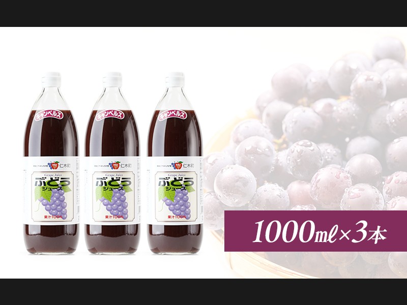 北海道仁木産ぶどうジュース(品種:キャンベルス):1000ml×3本 果汁飲料 野菜飲料 ブドウ ぶどう ジュ...